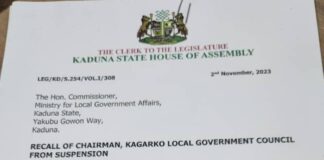Breaking News: Suspended Kagarko LG Chair, Nasara Rabo, reinstated