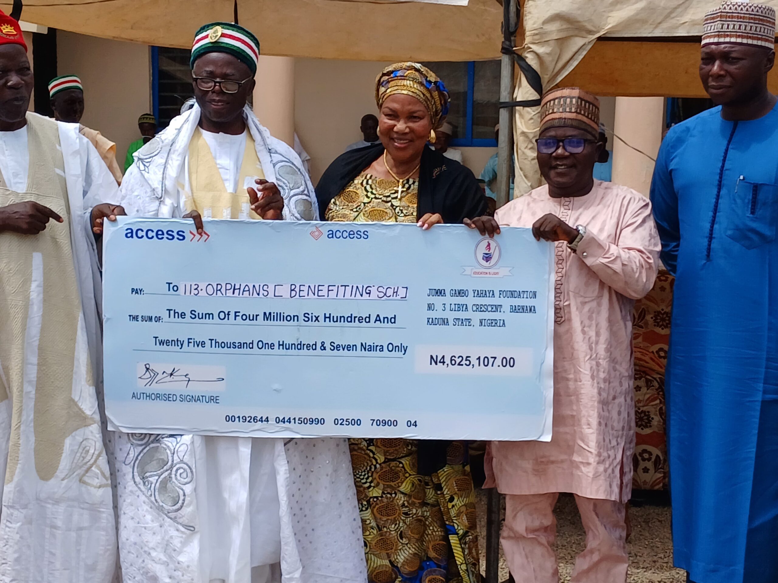 Agwam Atyap, HRH, Dominic Gambo Yahaya, yesterday, November 2, 2023 at the Agwatyap Palace, Tson-Aje in Zango, Zango-Kataf Local Government Area of Kaduna State issued cheques totalling N4, 625,107.00 to benefiting schools of the first batch of Jumma Gambo Yahaya Foundation Scholarship for Orphans that their parents were killed during the herdsmen attacks across communities in Atyap land.