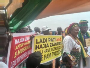Shedding light on the matter, the spokesperson of the group and a younger brother of the deceased, Mr. Illiyasu Usman, told Journalists after the protest that, Mrs. Ladi Edward Pati is their sister, but she is married and by their culture, her allegiance is to the family of her husband and not longer their family. However, after the demised of our brother, Ladi has continued to interfere with the activities of our family over the burial of our late brother against the opinion of our elders, the traditional institution (Ham) and in variant with the custom and tradition of Ham. So, Ladi Pati desecrates Ham tradition and faces backlash from ham youths.