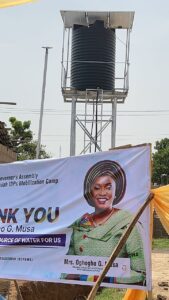 “She brought with her food items worth millions of Naira, It was upon her coming that we took time to spelled out some of our needs such as WASSE registration fees of qualified candidates, skill acquisition trainings, women and widows empowerment, children health and academic welfare, including this water project we are about to commission.