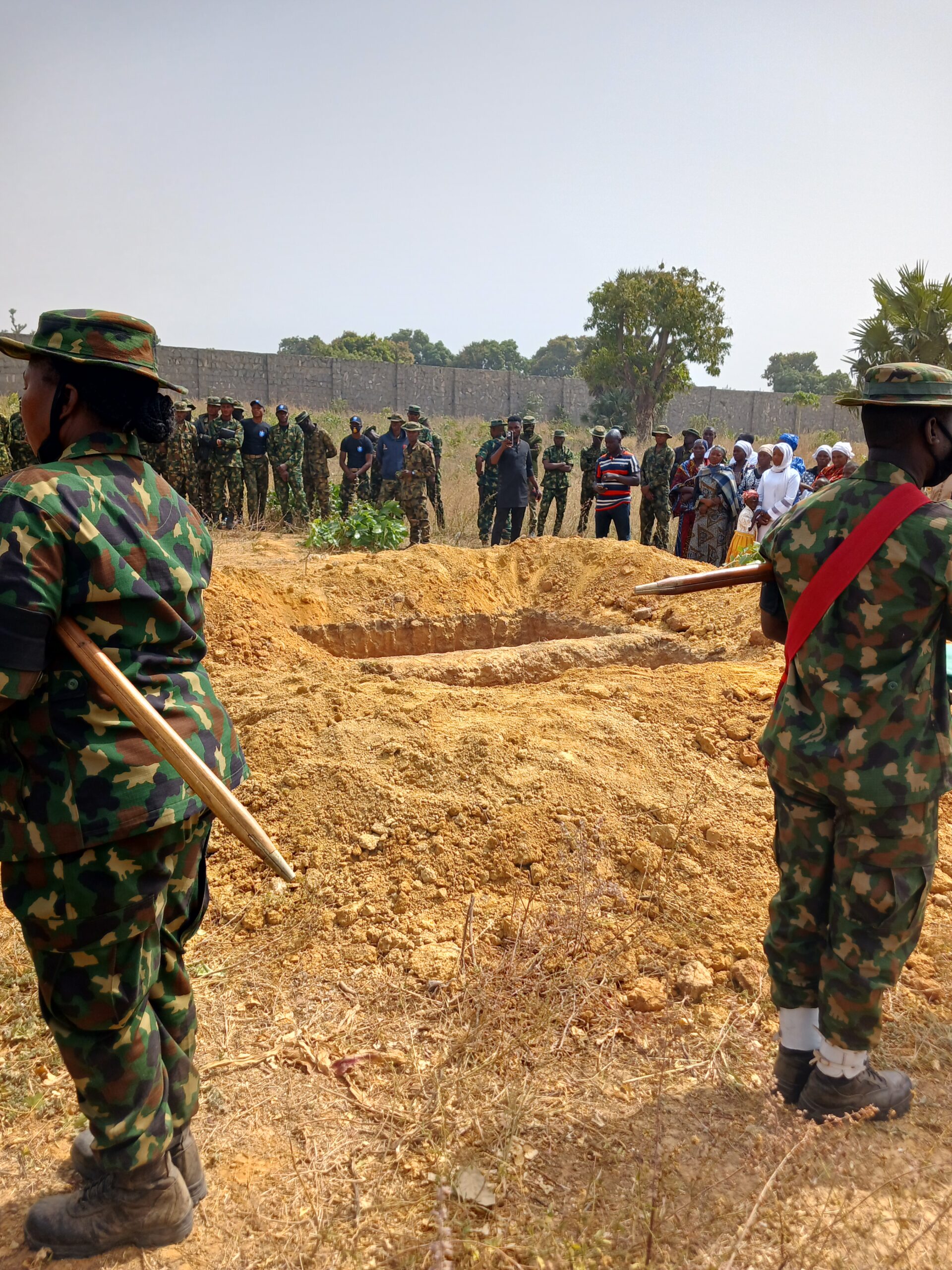 The burial which took place at the cemetry of the Nigerian Defense Academy (NDA), Kaduna where the NA gave their last rest to the deposed souls of the personnel who died in the cause of the ongoing war against banditry, terrorism and other forms of criminalities in Nigeria.