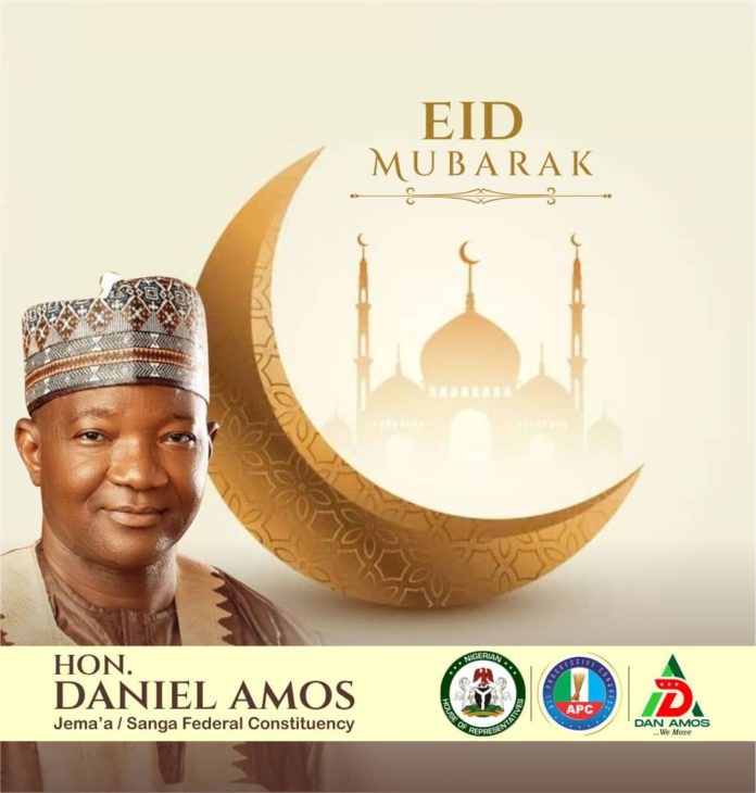 The Member representing Jema’a/Sanga Federal Constituency in the House of Representatives, Hon. Daniel Amos, has extended warm Eid-el-Fitr greetings to Muslim faithful and constituents, marking the end of the holy month of Ramadan.
