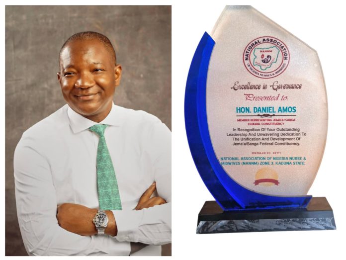The member representing Sanga/Jema’a Federal Constituency in the House of Representatives, Rep. Daniel Amos, has been honoured with an Award of Excellence by the National Association of Nigeria Nurses and Midwives (NANNM), Zone 3.